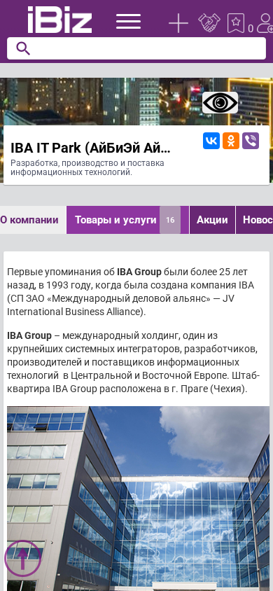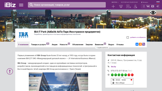 Название / Заголовок | IBA IT Park (АйБиЭй АйТи Парк Иностранное предприятие) - Разработка, производство и поставка информационных технологий.. 220141, Минск, , Программистов, 3 (оф. 41, 1 этаж) |