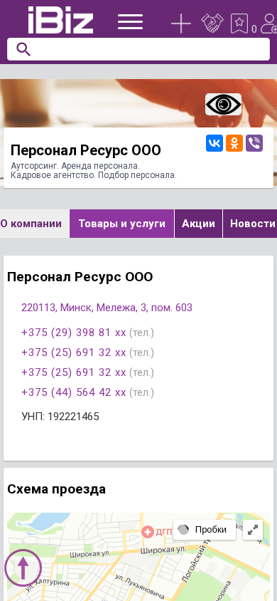 Адрес | г. Аренда персонала. Кадровое агентство. Подбор персонала.. 220113, Минск, , Мележа, 3, пом. 603" |