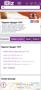 Название / Заголовок | Паритет Кредит ЧУП - Ломбард. Онлаайн-оценка. Выгодный процент. Займы под залог: бытовая техника, аудио и видео, спортинвертарь, строительный инструмент, телефоны, ноутбуки, планшеты, изделия из драгоценных металлов.. 220007, Минск, , Воронянского, 17А |