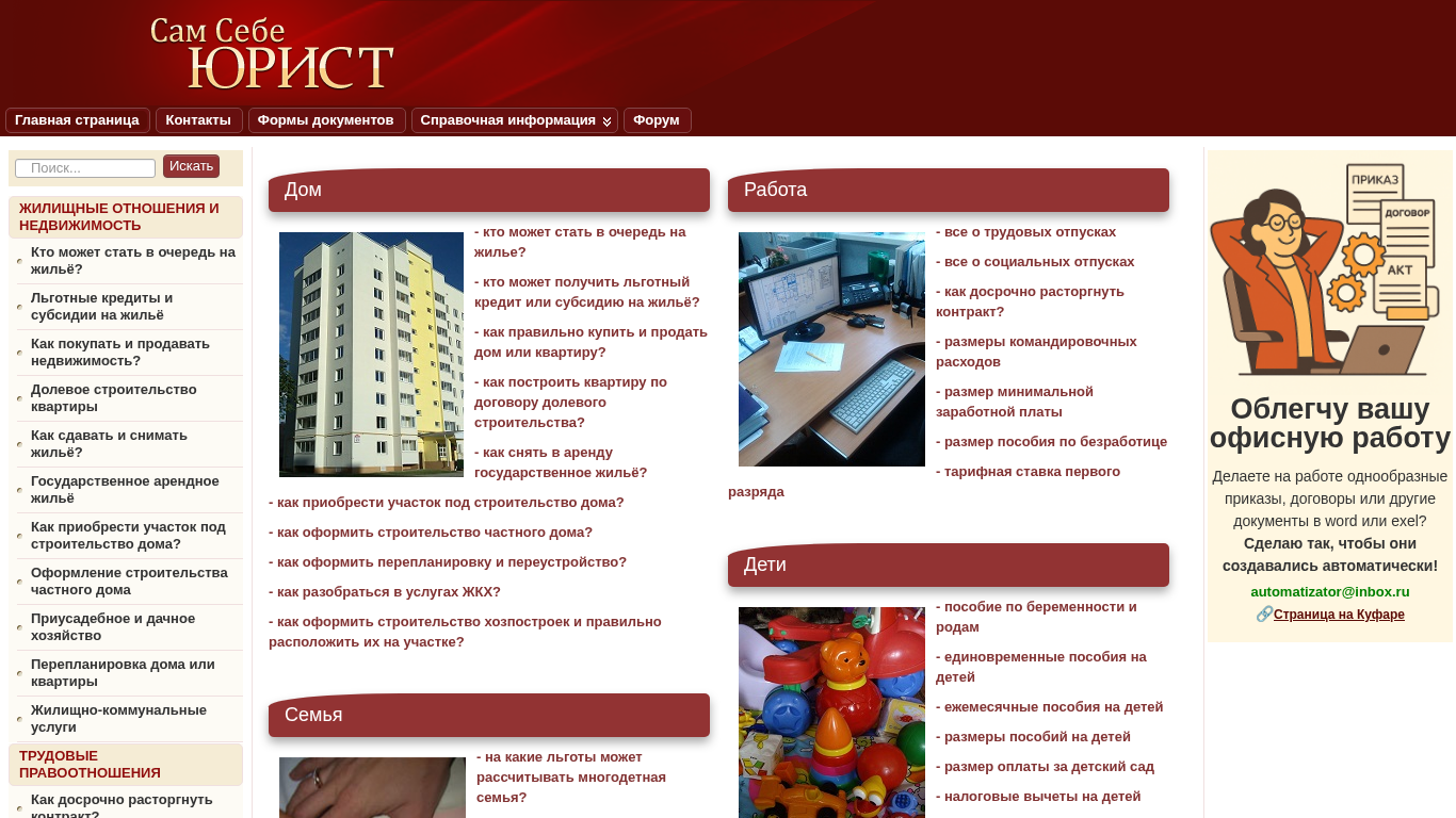 Название / Заголовок | Главная страница - Сам себе юрист |