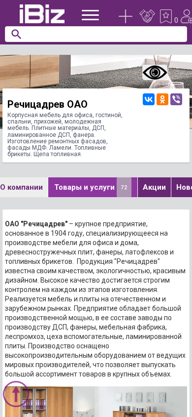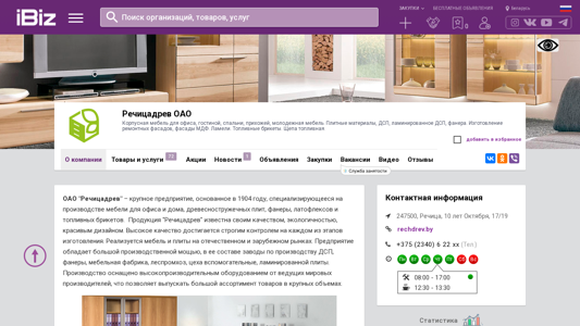 Название / Заголовок | Речицадрев ОАО - Корпусная мебель для офиса, гостиной, спальни, прихожей, молодежная мебель. Плитные материалы, ДСП, ламинированное ДСП, фанера. Изготовление ремонтных фасадов, фасады МДФ. Ламели. Топливные брикеты. Щепа топливная.. 247500, Речица, , 10 лет Октября, 17/19 |