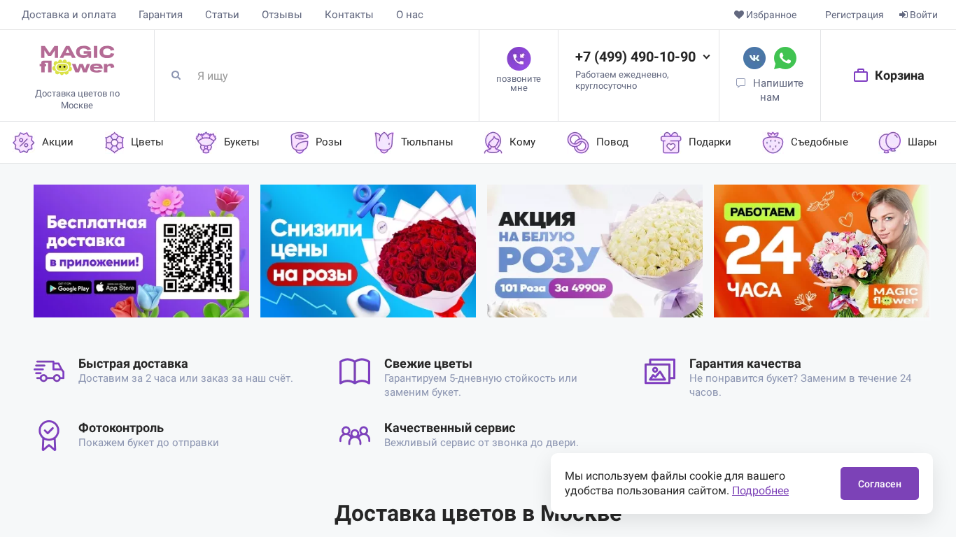 SEO-описание | Быстрая ДОСТАВКА ЦВЕТОВ в Москве. Курьер привезет БЫСТРО. 5 тыс реальных отзывов на сайте. Фото собранного букета. ☏ +7 (499) 490-10-90 |