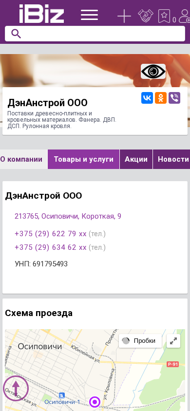 SEO-описание | ДэнАнстрой ООО - Поставки древесно-плитных и кровельных материалов. Фанера. ДВП. ДСП. Рулонная кровля.. Схема проезда, контактные телефоны, адрес компании ДэнАнстрой ООО. 213765, Осиповичи, , Короткая, 9 |