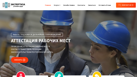 | AI-анализ | --- The web project "Trud Expert.by" offers certification of workplaces with a comprehensive production control and complete hygienic assessment. The accredited laboratory conducts on-site inspections to identify harmful and dangerous production factors and implements measures to bring workplace conditions in accordance with the Belarusian labor laws. The company has been active in the market for over 10 years, providing reliable partner services in the field of labor safety. Services include the development of Safety and Hygiene at Work (SUOT), lab tests, document preparation, and workplace certification (ARM). The laboratory follows the international standard ISO/IEC 17025 and is accredited. The assessment covers various physical factors such as the quality of the working environment air. The website also provides a contact number and an online application form. |
