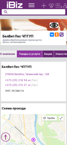| AI-анализ | The portal BelVitLes CHTUP is a wood processing enterprise specializing in the production and sale of boards and pilings. It is located in Vitsebsk, Belarus, at Chepinsky First Street 12A. The company's contact information includes two phone numbers: +375 (29) 218 94 xx and +375 (29) 316 21 xx. Business hours are from 9:00 to 18:00, Monday through Friday, with Saturdays and Sundays being closed. The company's UNP number is 391286116. The website offers various services and products related to wood processing and equipment, as well as news, announcements, vacancies, and customer reviews. Users can create their own map and check for traffic conditions. The site |