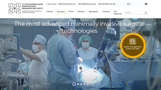 | AI-анализ | The web project "State Institution “Republican Clinical Health Care Center”" is a healthcare institution website. The site provides information on the center's services, specializations, and departments. Keywords associated with the project include "health care center," "doctors," and "diagnostics." The site includes sections on cardiac services, surgery, and a diagnostic laboratory. The institution boasts of using the most advanced minimally invasive surgical technologies, comprehensive cancer screening programs, and annual medical support programs. The Quality Management System ISO 9001 is implemented, ensuring consistent quality in all services offered. The site also includes news and announcements, as well as information on the benefits of annual maintenance at the center. Services offered include inpatient and outpatient treatment, cardiac rehabilitation, sleep laboratory, vestibulometry and stabilometry, comprehensive cerebral accident rehabilitation programs, cerebral post |
