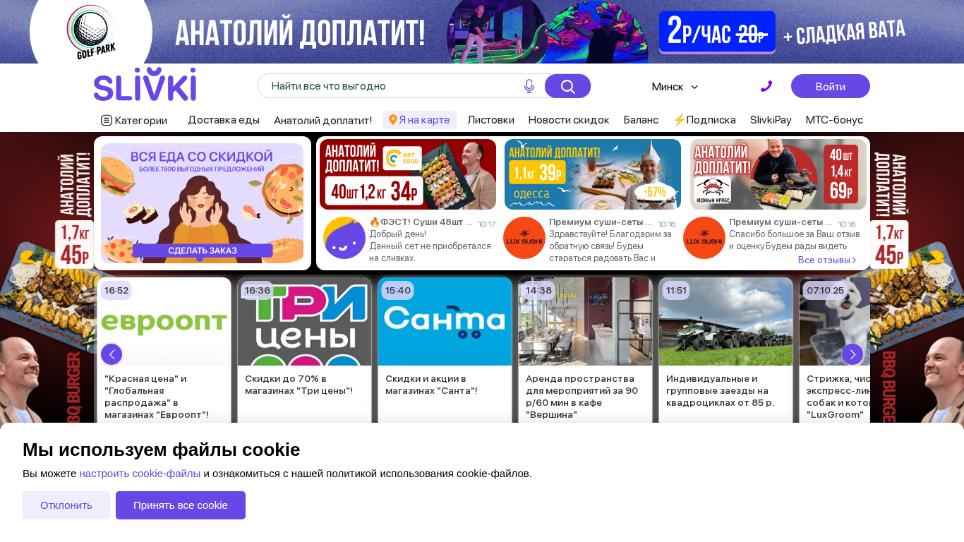 Название / Заголовок | Скидки в Минске! Акции и распродажи на Slivki.by! |