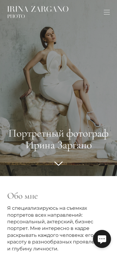SEO-описание | Меня зовут Ирина Заргано. Я профессиональный портретный фотограф. Специализируюсь на съемках личных историй, бизнес портрета, съемках звезд. Так же сотрудничаю с брендами и журналами, занимаюсь обучением. Здесь вы познакомитесь с моим портфолио и сможете узнать про мой обучающий курс. |