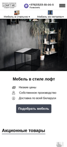 SEO-описание | Купить мебель лофт по выгодным ценам в интернет-магазине Loftme.by. Закажите мебель в стиле лофт недорого с доставкой. Фото, размеры, описание, гарантия. Оставьте заявку ☎ +375(33)335-50-05. |