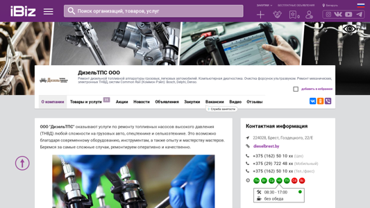 Название / Заголовок | ДизельТПС ООО - Ремонт дизельной топливной аппаратуры грузовых, легковых автомобилей. Компьютерная диагностика. Очистка форсунок ультразвуком. Ремонт механических, электронных ТНВД, систем Common Rail (Коммон Рэйл): Bosch, Delphi, Denso.. 224028, Брест, , Гоздецкого, 22/Е |