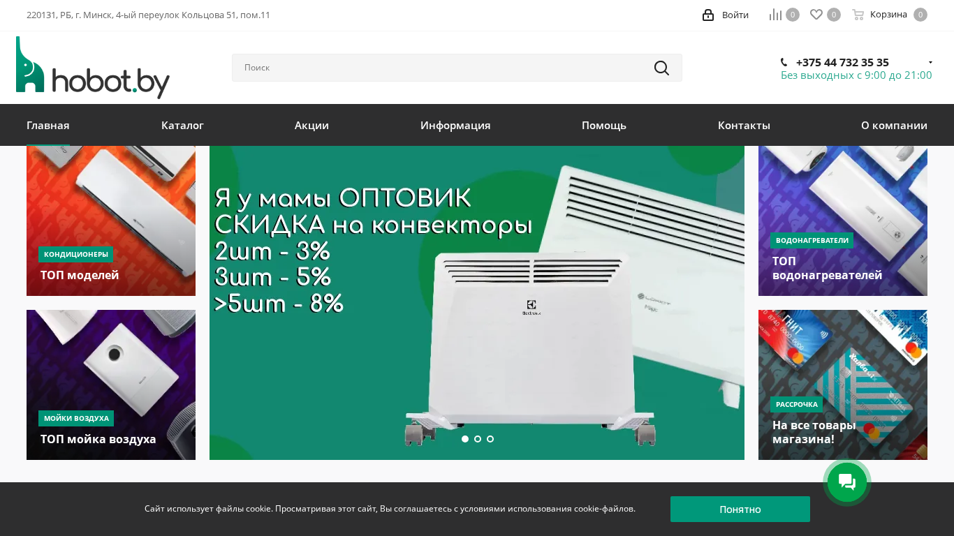 SEO-описание | Акционные предложения на кондиционеры и сплит-системы в каталоге ▷ Заказывайте в интернет-магазине Hobot.by ☆ Доставка по Минску и городам Беларуси ✓ Рассрочка. Звоните ☎ +375 (44) 732-35-35 |