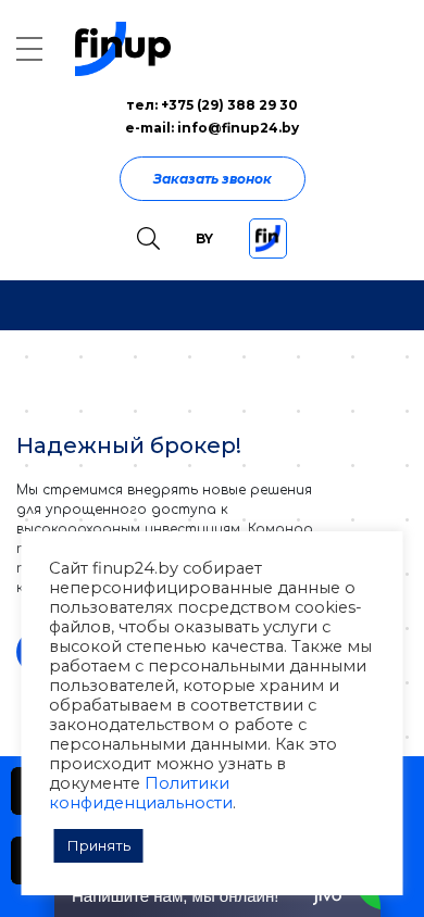 SEO-описаниеФинап24 - брокер на фондовом рынке Республики Беларусь. Ценные бумаги и инвестиции от проф. участника рынка ценных бумаг в РБ finup24. Приложение для инвестиций