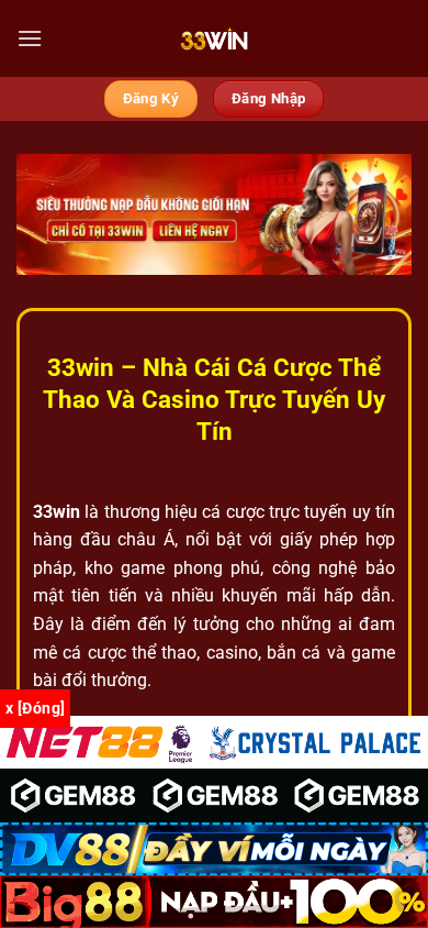 Название / Заголовок | 33win – Nhà Cái Cá Cược Thể Thao Và Casino Trực Tuyến Uy Tín |