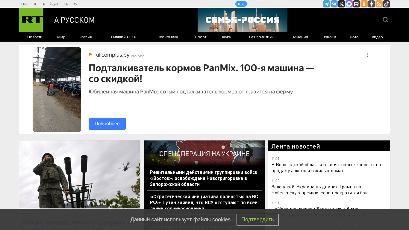 SEO-описаниеАктуальная картина дня на RT: круглосуточное ежедневное обновление новостей политики, бизнеса, финансов, спорта, науки, культуры. Онлайн-репортажи с места событий. Комментарии экспертов, актуальные интервью, фото и видео репортажи.