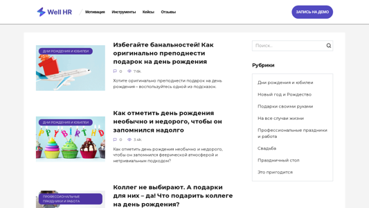 | AI-анализ | The website 'blog.well.by' is a gift ideas and advice platform for various occasions and life events. It offers numerous original and pleasant gift suggestions for any occasion. The site includes sections for 'Motivation', 'Instruments', 'Cases', 'Reviews', and 'Social Networks'. The 'Days of Birth and Celebrations' and 'New Year and Christmas' rubrics provide inspiration for unique and affordable gifts for birthdays and other celebrations. It is also recommended for gifts for colleagues on their birthdays. The site offers a form for 'Contact Us' and includes licensing and user agreement, privacy policy, and country information for Russia, OAE, and Belarus. |