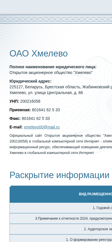 SEO-лексика | скачать хмелево оао годовой отчет аудиторское заключение 2024 пароль e-mail апр информации 30-04-2025 открытое акционерное общество адрес беларусь унп 200216058 |