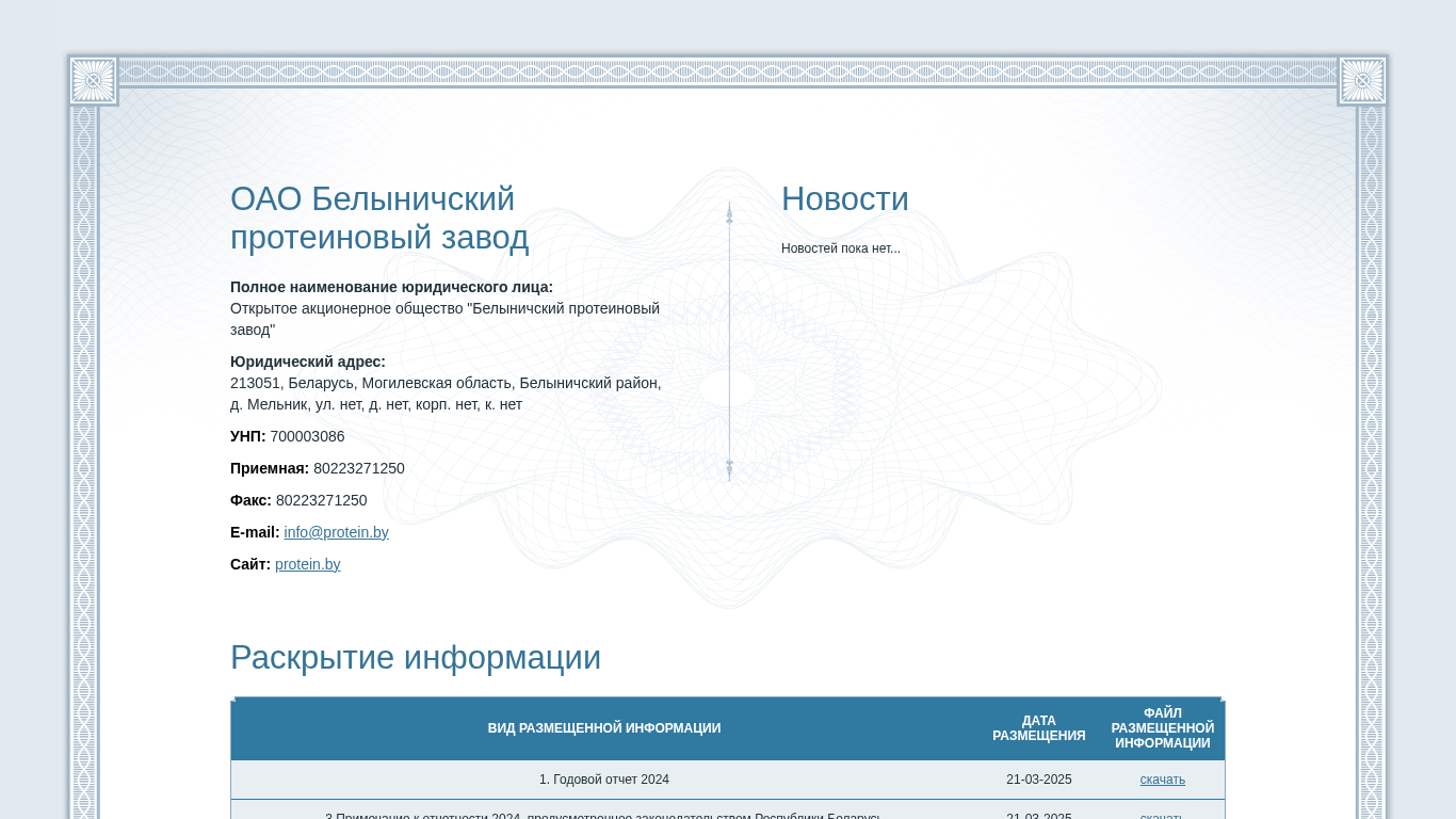 Название / Заголовок | Белыничский протеиновый завод ОАО |