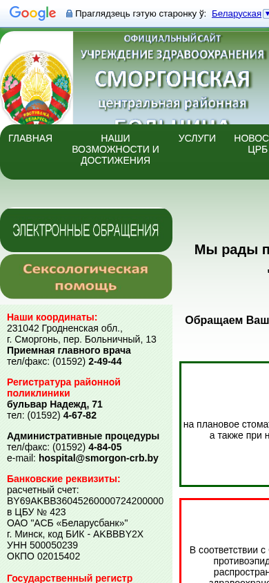 Ключевые слова | Сморгонская центральная районная больница сайт Сморгонской ЦРБ Сморгонская ЦРБ больница Сморгонь |
