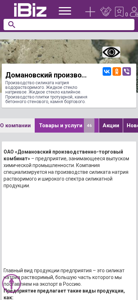 Название / Заголовок | Домановский производственно-торговый комбинат ОАО - Производство силиката натрия водорастворимого. Жидкое стекло натриевое. Жидкое стекло калийное. Производство плитки тротуарной, камня бетонного стенового, камня бортового. . 225280, , Доманово аг., Первомайская, 6 |