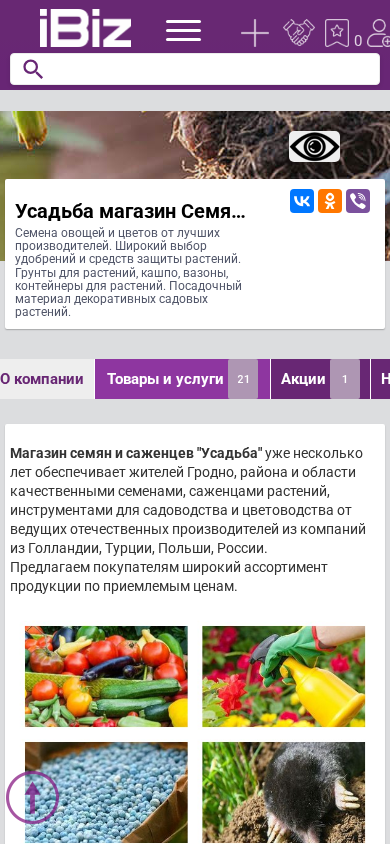 SEO-описание | Усадьба магазин Семян ИП Дейкало Н. А. - Семена овощей и цветов от лучших производителей. Широкий выбор удобрений и средств защиты растений. Грунты для растений, кашпо, вазоны, контейнеры для растений. Посадочный материал декоративных садовых растений.. Схема проезда, контактные телефоны, адрес компании Усадьба магазин Семян ИП Дейкало Н. А.. 230025, Гродно, , Космонавтов пр-т, 9/4 |
