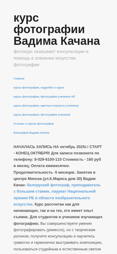 курс фотографии Вадима Качана: фотокурс оказывает консультации и помощь в освоении искусства фотографии