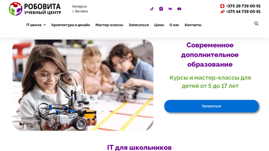 SEO-описаниеЦентр детского развития в Витебске - Робовита. Предлагаем развивающие занятия, детские кружки для детей 5-12 лет, кружки для развития и творческие студии.