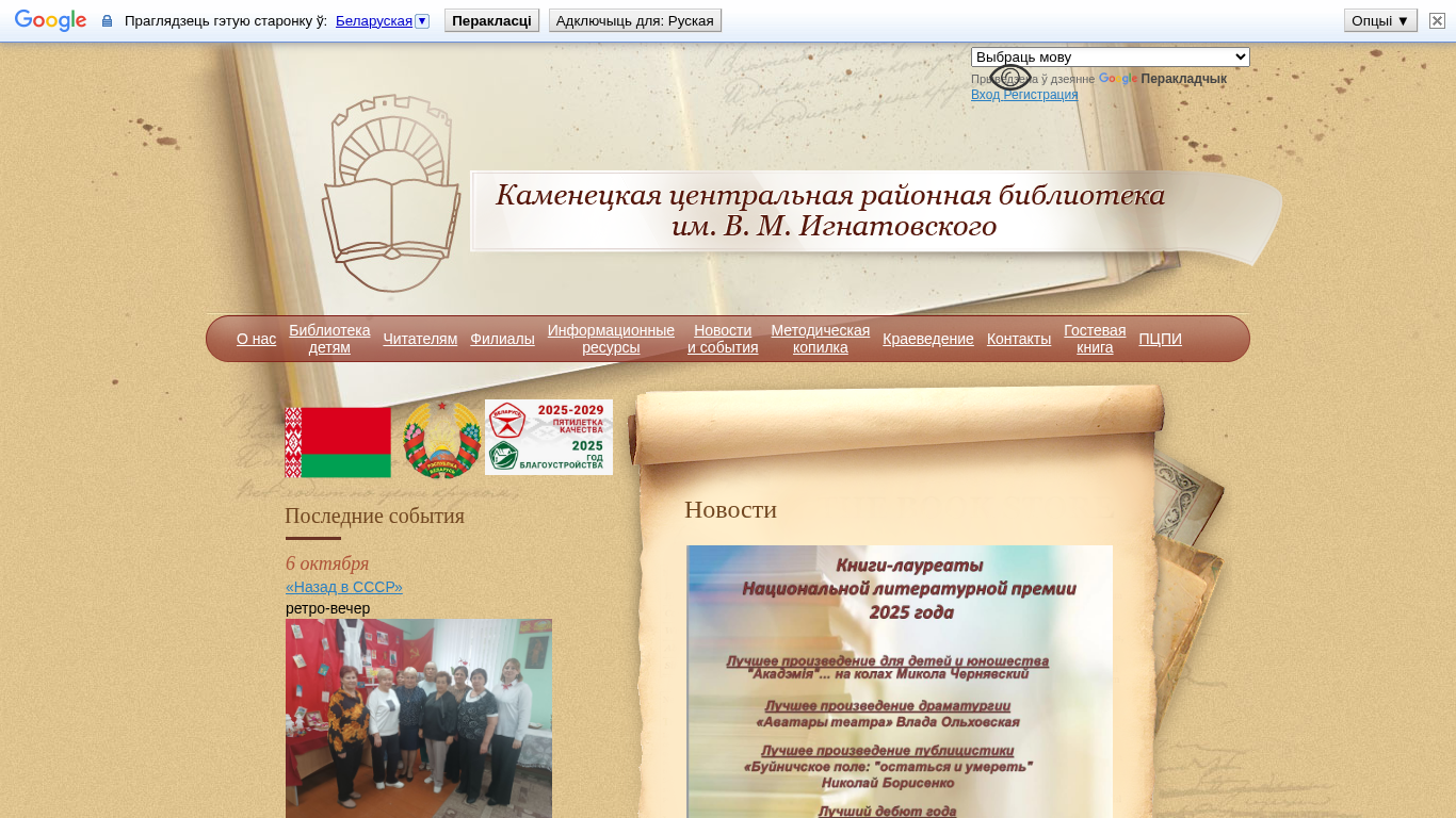 Название / Заголовок | Каменецкая центральная районная библиотека им. В.М. Игнатовского |