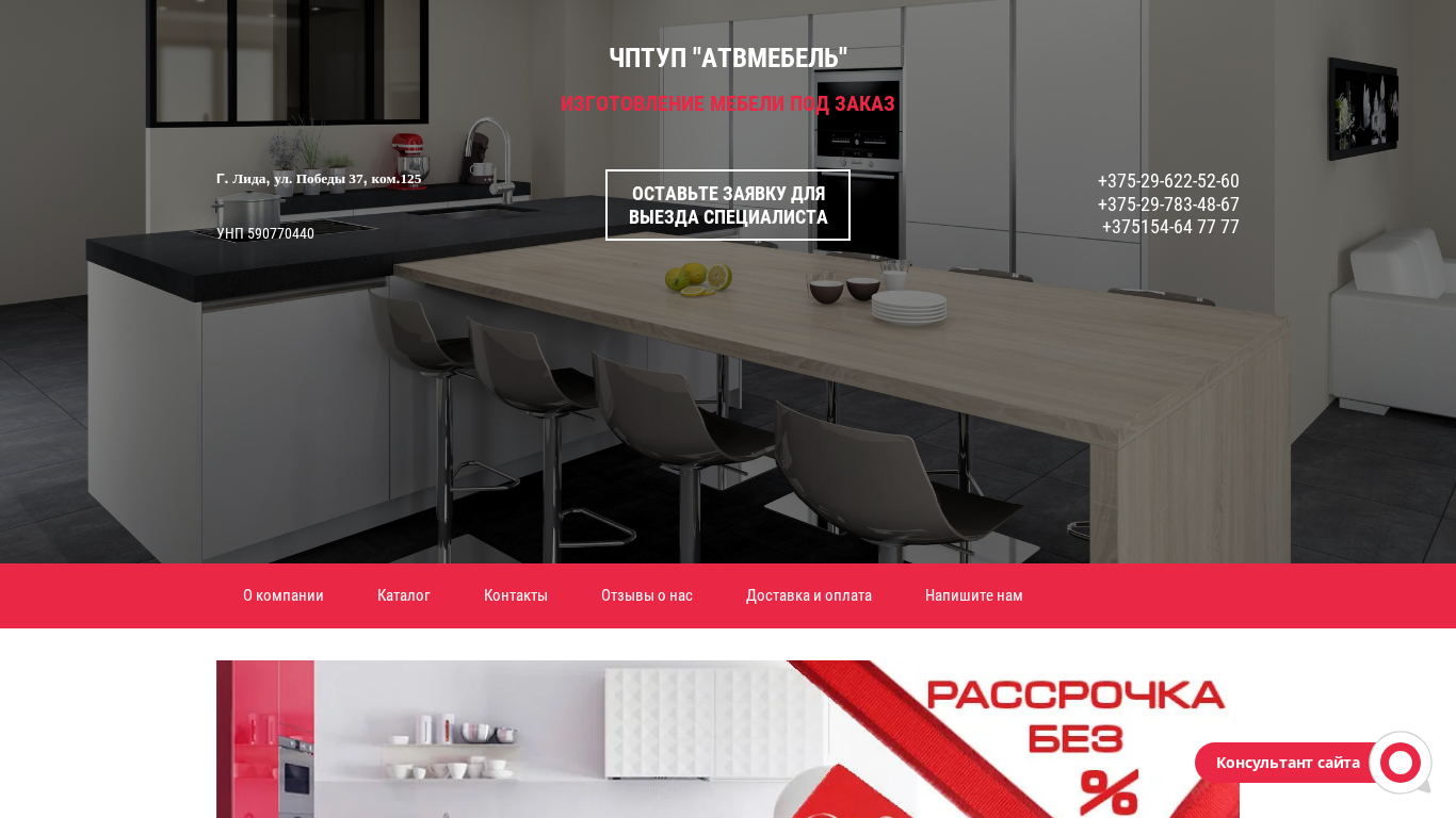 SEO-описание | Компания "АТВмебель" – масштабное мебельное производство. За всё время своей работы на мебельном рынке компания сумела заслужить уважение большого числа клиентов по всей Беларуси. Постоянно развивающееся предприятие заняло свою уже нишу в сфере производства корпусной мебели. "АТВмебель" предлагает прекрасный выбор мебели на заказ, которая производится по Вашим особенным проектам и учитывает все нюансы и пожелания. |
