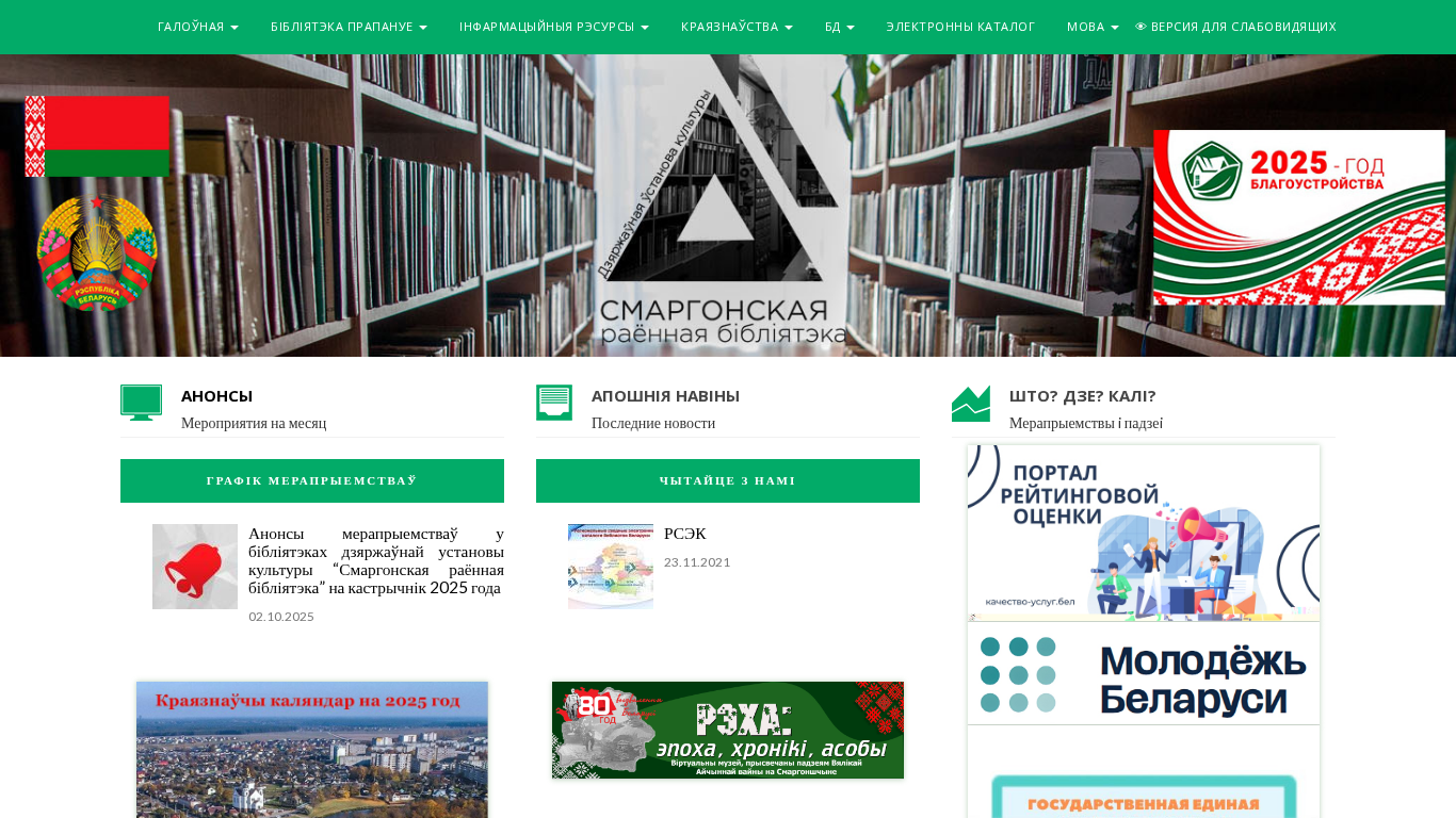 Название / Заголовок | Дзяржаўная ўстанова культуры "Смаргонская раённая бібліятэка" |