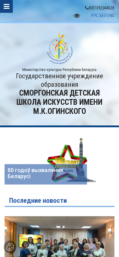 | AI-анализ | The website is for the Сморгонская детская школа искусств имени М.К.Огинского (Smorgon Children's Art School named after M.K. Oginsky) located in Grodnennaia oblast', city of Smorgon, ul. Kiрова d.2 in Belarus. The school offers various artistic programs and has several creative collectives including VIO-Fantasia, Vilianchanka Gulyanko, Zavodnye smychki, Kantabile, Kompliment, Kontsrasty, Kucharochki, Subito, Charovnaya skripka, Yavar Orchestra of Russian Folk Instruments, as well as encouragement from the Special Fund of the President of the Republic of Belarus for supporting talented youth. The school also has various community organizations such as OO "BRSM", |