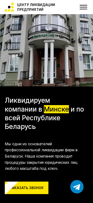SEO-описание | ЗАО "Центр ликвидации предприятий" — один из основателей профессионального закрытия юр лиц, ООО, ИП, ЧУП, ОДО в Минске и Беларуси. Работаем с 2009 г. Звоните +375-29-608-01-01 |