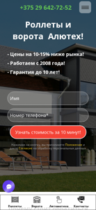 | SEO-описание | Заказать ☎ +375 29 642-72-52 - Rollets.by: Роллеты (рольставни), Гаражные Секционные и Роллетные ворота, Откатные ворота, Автоматику с обмером, доставкой и установкой в Минске и по всей стране. Гарантия до 10 лет. |