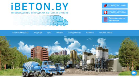 | SEO-описание | Производство бетона и растворов в Минске. Доставка миксерами и самосвалами. Производство бетонных работ |