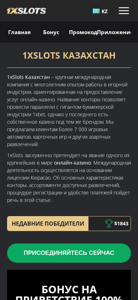 | SEO-описание | Приветственный бонус и бесплатные спины для новых игроков ✔️ Покер, рулетка, слоты, живые дилеры и бесплатные игры | Играйте и выигрывайте в казино 1xSlots Казахстан! |