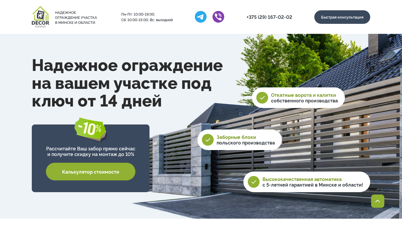 SEO-описание | Забор из бетонных блоков, откатные ворота, калитка, автоматика с гарантией 5 лет в Минске и области. |