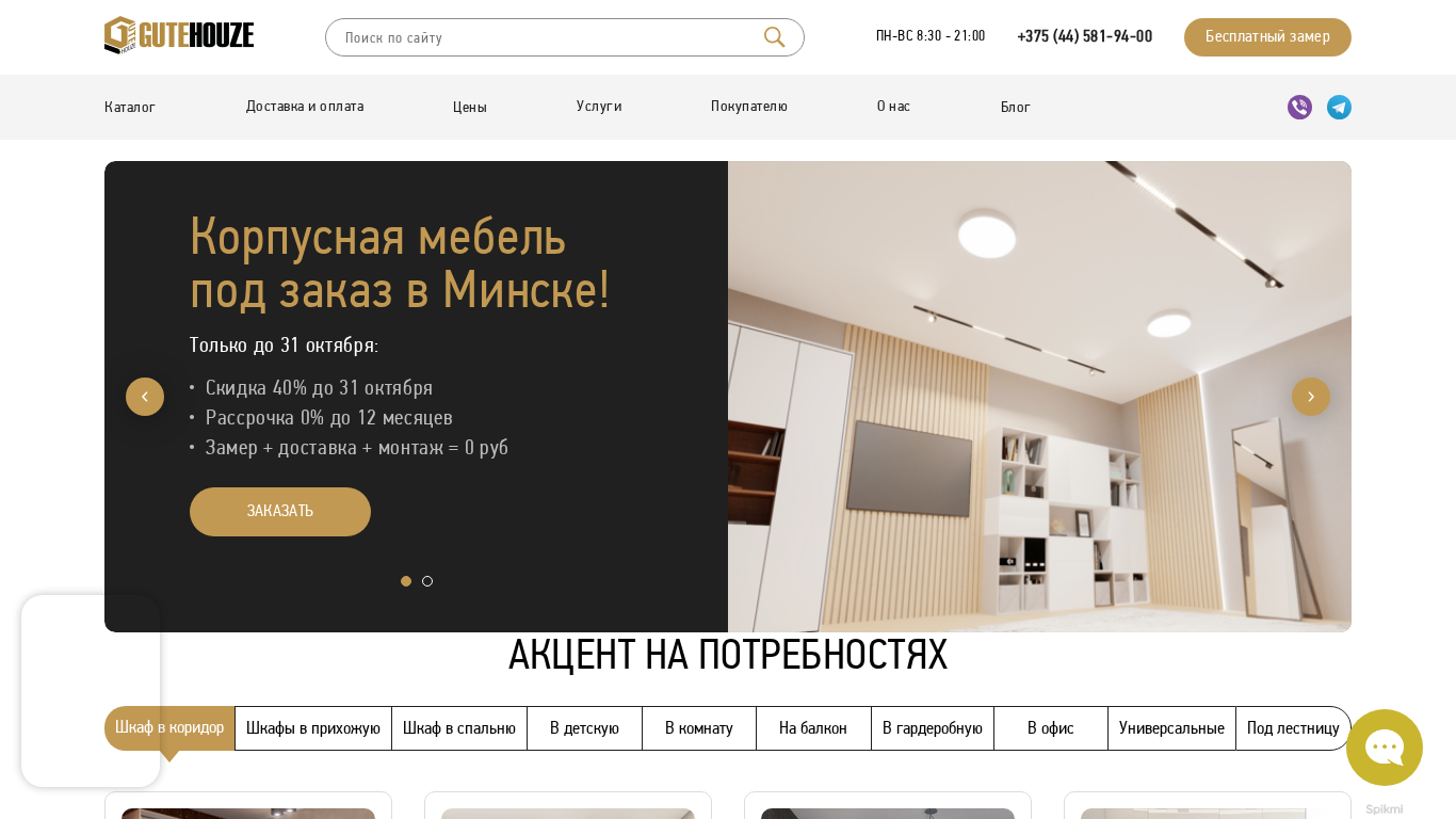 SEO-описание✅ Производим МЕБЕЛЬ в Минске под заказ для квартиры, дома, офиса ☑️ Рассрочка 0% до 24 месяцев ✅ НИЗКИЕ ЦЕНЫ, СКИДКИ! ☑️ ДОСТАВКА 0 руб. по Минску ✅ Гарантия 5 лет
