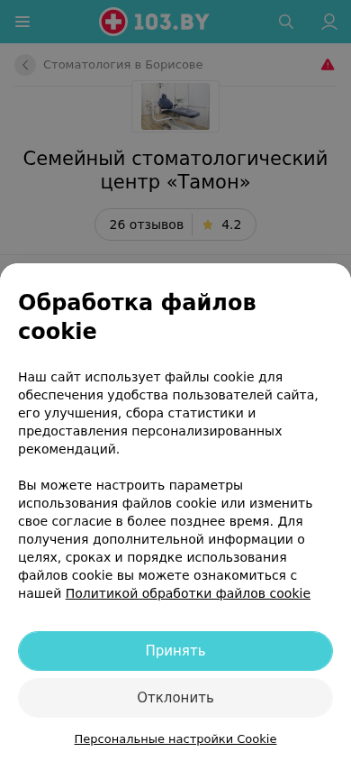 SEO-описание | Семейный стоматологический центр Тамон Борисов ул. Ленинская 41 – телефоны, время работы, запись на прием, отзывы в каталоге медицинского портала 103.by. |