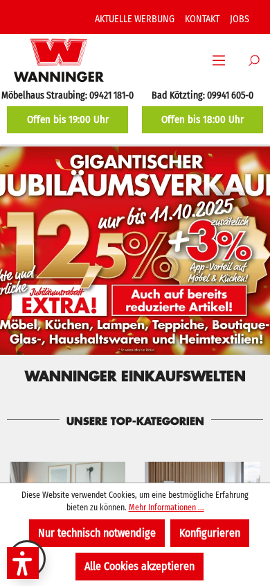 | SEO-описание | Die WANNINGER Einkaufswelten ✔ Extra Klasse einrichten ✔ Küchen, Möbel und vieles mehr ✔ |