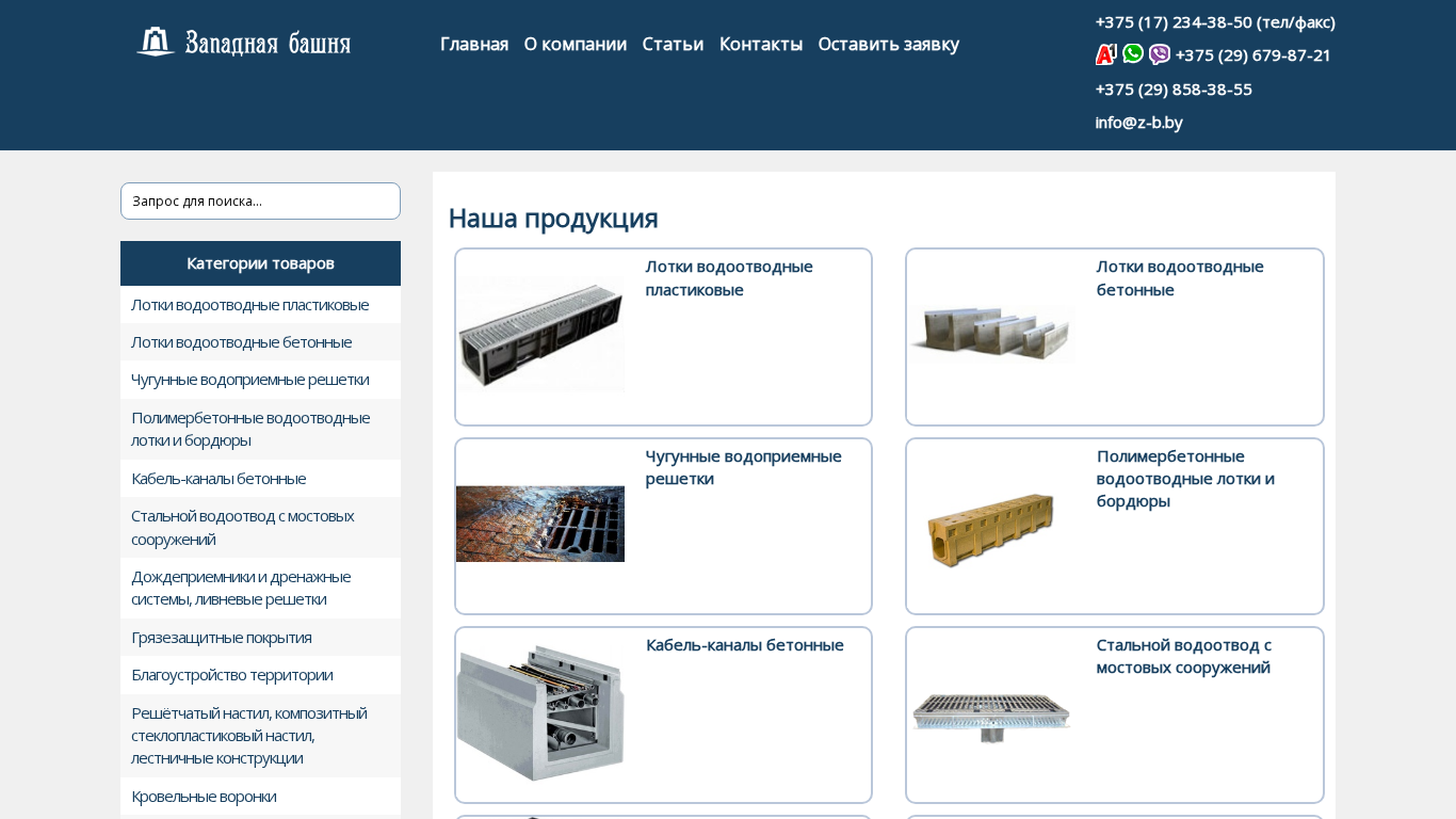 | SEO-описание | Пластиковые водоотводные лотки, бетонные водоотводные лотки, решетчатый настил, дождеприемники, чугунные решетки |