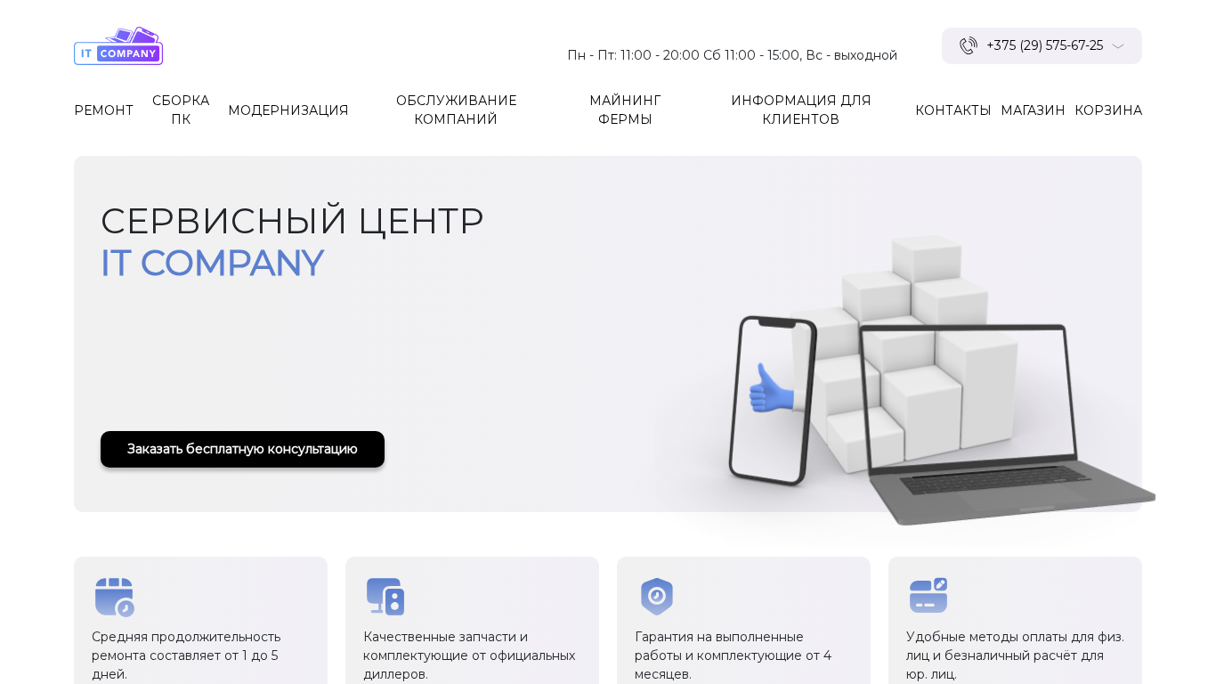 | SEO-описание | ITCompany - это профессиональный сервисный центр, предоставляющий широкий спектр услуг по ремонту и обслуживанию цифровой техники⭐ Наши цены конкурентоспособны, а сервис - высококачественный и надежный |