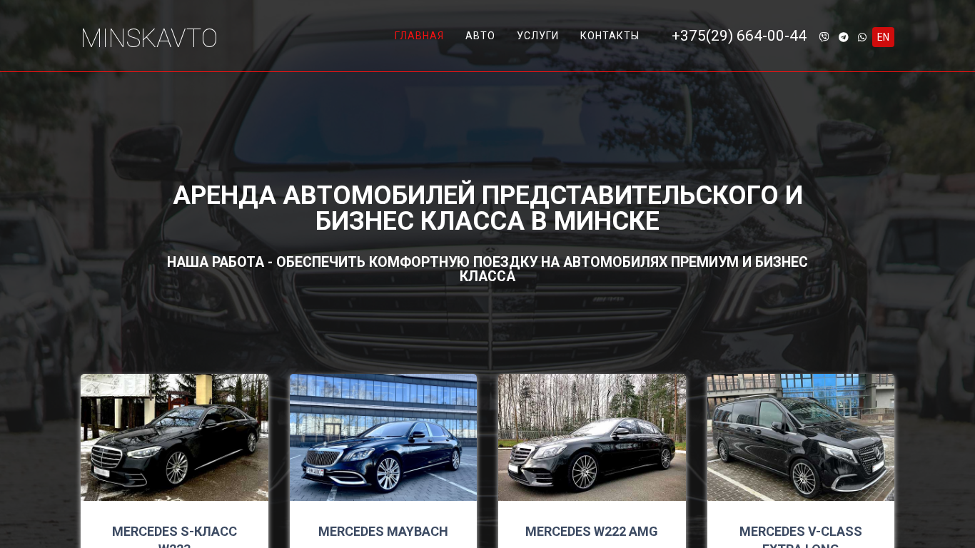SEO-описание | Прокат авто премиум-класса в Минске с водителем. Арендуя автомобиль Mercedes у нас в Минске мы доставим Вас точно и в срок. Заказ по телефону ☎ +37529 664-00-44 |