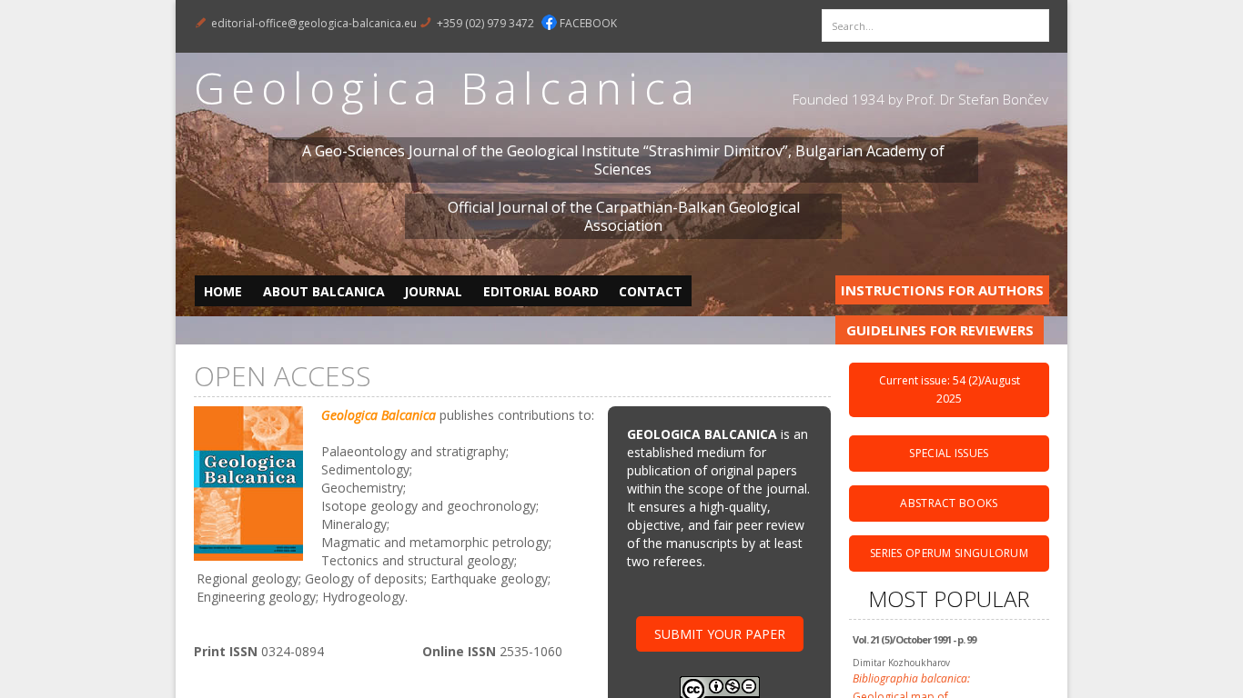 SEO-описаниеGeologica Balcanica is an established medium for publication of original, peer-reviewed, full-text papers within the scope of Earth sciences