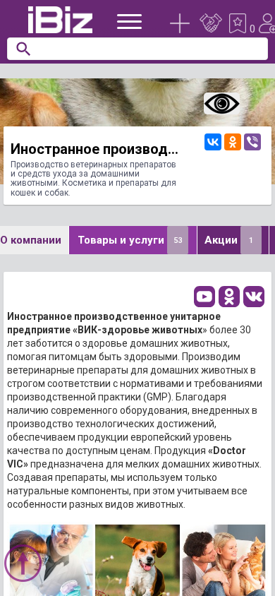 Название / Заголовок | Иностранное производственное унитарное предприятие ВИК-здоровье животных - Производство ветеринарных препаратов и средств ухода за домашними животными. Косметика и препараты для кошек и собак.. 210040, Витебск, , ул. 1-я Журжевская, 29 |