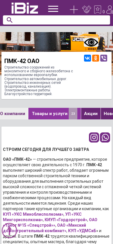 SEO-описание | ПМК-42 ОАО - Строительство сооружений из монолитного и сборного железобетона с использованием евроопалубки. Строительство автомобильных дорог. Строительство инженерных сетей (водопровод, канализация). Электромонтажные работы. Благоустройство территорий.. Схема проезда, контактные телефоны, адрес компании ПМК-42 ОАО. 223034, Заславль, , Советская, 133 |