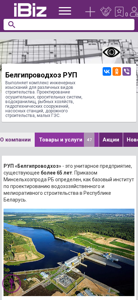Название / Заголовок | Белгипроводхоз РУП - Выполняет комплекс инженерных изысканий для различных видов строительства. Проектирование осушительных, оросительных систем, водохранилищ, рыбных хозяйств, гидротехнических сооружений, насосных станций, дорожного строительства, малых ГЭС.. 220002, Минск, , Машерова пр-т, 25, эт. 2 |