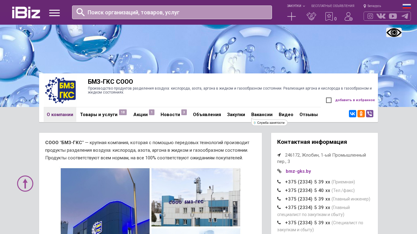SEO-описание | БМЗ-ГКС СООО - Производство продуктов разделения воздуха: кислорода, азота, аргона в жидком и газообразном состоянии. Реализация аргона и кислорода в газообразном и жидком состояниях.. Схема проезда, контактные телефоны, адрес компании БМЗ-ГКС СООО. 246172, Жлобин, , 1-ый Промышленный пер., 3 |