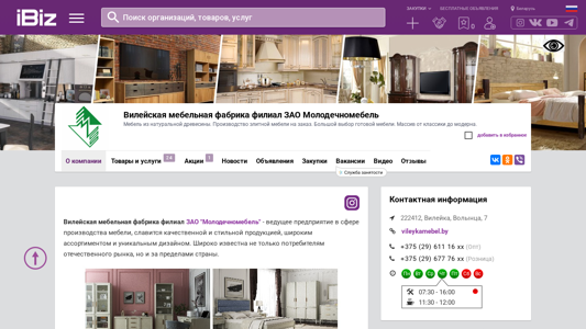 info@ibiz.by, sbyt@vileykamebel.by | |