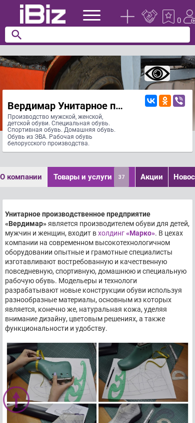 Название / Заголовок | Вердимар Унитарное производственное предприятие - Производство мужской, женской, детской обуви. Специальная обувь. Спортивная обувь. Домашняя обувь. Обувь из ЭВА. Рабочая обувь белорусского производства.. 225215, Белоозерск, , Шоссейная, 5 |