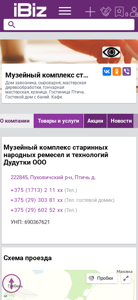 | AI-анализ | The portal dudutki.ibiz.by is a complex dedicated to traditional Belarusian folk crafts and technologies, featuring a merchant's house, cheese dairy, woodworking shop, pottery studio, and blacksmith. It also offers a hotel named Ptichy, a guesthouse with a sauna, and a café. The complex is located in the village of Ptichy, Puhovich District, Minsk Region, Belarus. Contact information for the company includes phone numbers +375 (1713) 2 11 xx and +375 (29) 303 81 xx, as well as Unified State Register number 690367621. The website provides details on various services, including green tourism, museums, and event organization, as well as information on |