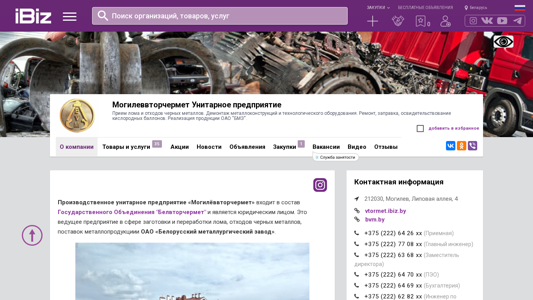 | AI-анализ | The website is for Могилеввторчермет Унитарное предприятие, a production enterprise located in Могилев, Belarus, at Липовая аллея, 4. The company specializes in the acceptance and processing of scrap and waste black metals, as well as the dismantling of metal structures and technological equipment. Additionally, they offer services for the repair, filling, and certification of oxygen tanks, as well as the sale of products from ОАО ''БМЗ''. The enterprise is part of the State Enterprise "Белвторчермет" and provides accessible prices and quality services in the fields of second-hand raw materials and chemical industry. The website includes sections for company information, products and services, and contact details. |